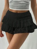 Design: Layered lace skirt; Womens mini skirt, high waist, tiered ruffled, built in shorts design, easy to pull on and take off; Easy to match with tank tops or shirts